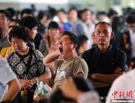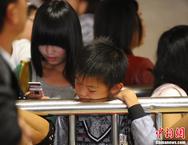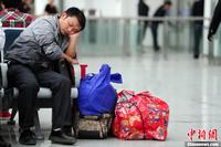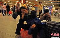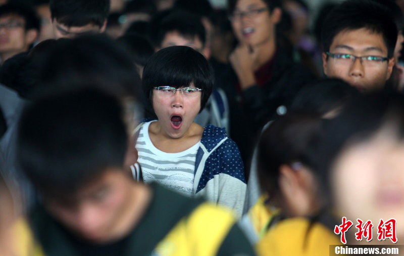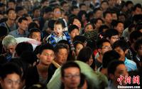 2012年10月7日,今天是中秋、国庆长假的最后一天,全国多地迎来返程客流高峰。在各大景点、车站汹涌的人潮中,很多游客只能累别长假。图为10月6日,众多旅客在山东省潍坊火车站候车大厅候车。张驰 摄 图片来源:东方IC 版权作品 请勿转载