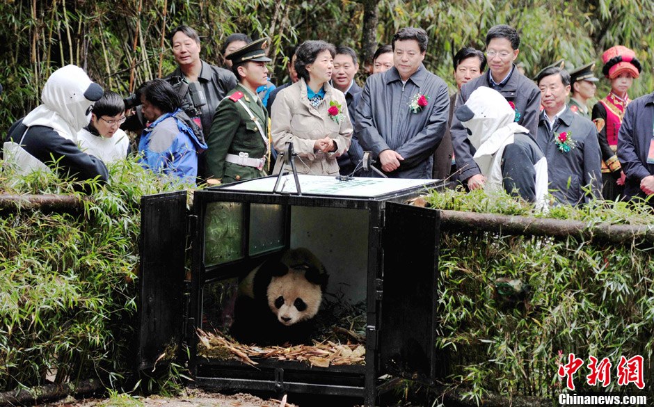 人工繁育大熊猫“淘淘”正式放归大自然