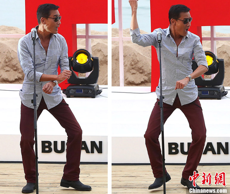 10月5日,韩国釜山,第17届釜山电影节。梁家辉跳马步舞。图片来源:东方IC 版权作品 请勿转载