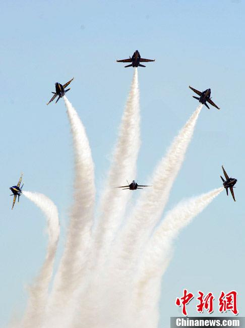 美国海军航空兵飞行秀 演绎优美空中舞蹈