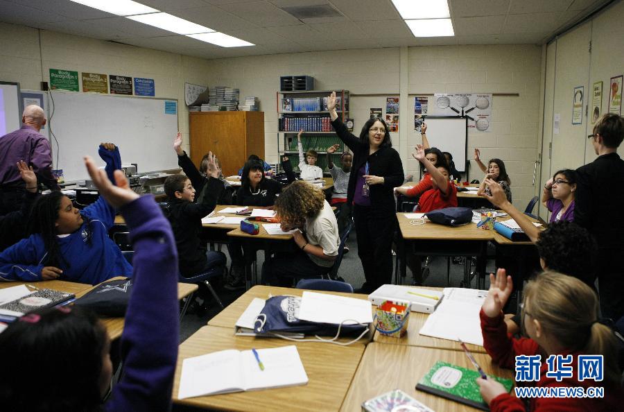 10月18日,在美国弗吉尼亚州雷斯顿,兰斯顿·休斯中学的学生们在地震演习前与老师互动。当日,兰斯顿·休斯中学组织学生们参加了由美国地质勘探局和联邦紧急措施署共同举办的地震演习,通过对地震成因的解释以及遇到地震时的应急措施演练等活动,旨在让人们更深入地了解地震中可能存在的危险和应采取的正确逃生技巧。新华社记者方喆摄 图片来源:新华网