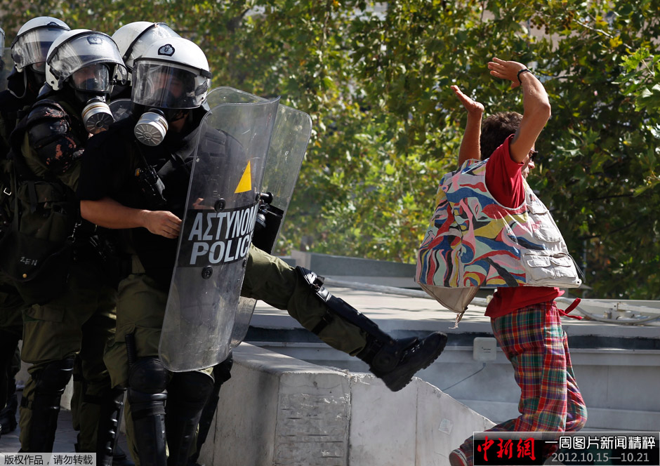 10月18日,希腊民众举行了24小时的全国大罢工。雅典,数百名举行抗议的年轻人向防暴警察扔燃烧弹、瓶子和大理石块,并引发冲突。又一场反对财政紧缩的示威游行演变成暴力活动。
