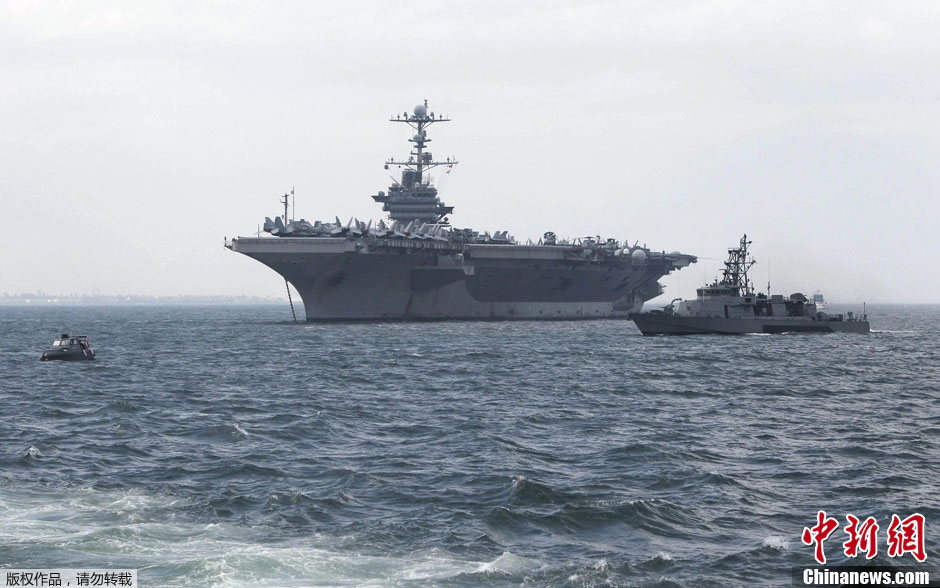 当地时间10月24日,美国海军第七舰队核动力航空母舰“乔治·华盛顿”号抵达菲律宾马尼拉湾。