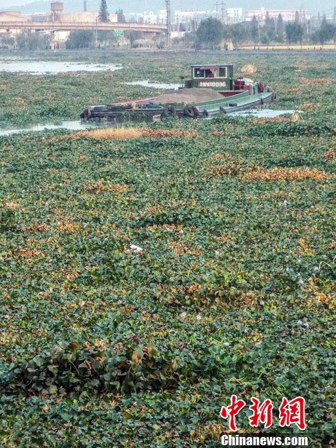 浙江绍兴数公里水葫芦封堵浙东古运河