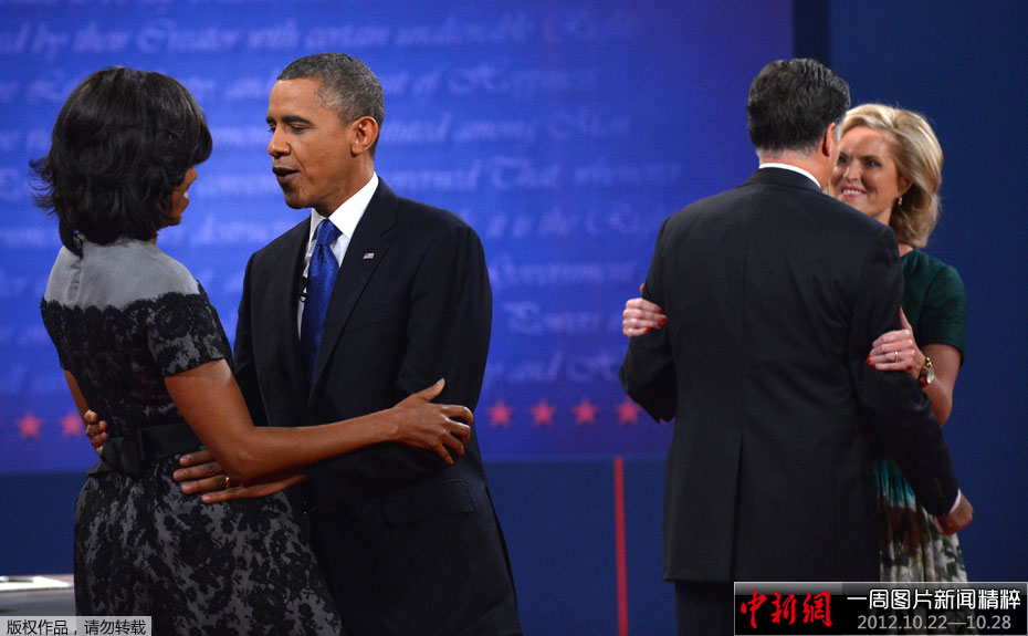 美国东部时间10月22日,美国佛罗里达州的林恩大学,奥巴马和罗姆尼的第三场也是最后一场总统候选人辩论举行,辩论双方聚焦对外政策。辩论结束后,奥巴马与罗姆尼各自感谢妻子的支持。