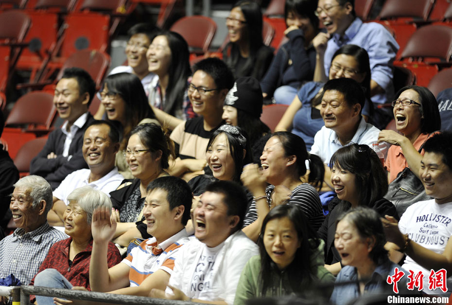 当地时间10月27日晚,著名相声演员郭德纲、于谦率领德云社弟子在美国洛杉矶举行相声专场商业演出,这是郭德纲美国巡演的第一站。尽管票价不菲,依然吸引了数千名观众购票入场观看。中新社发 毛建军 摄