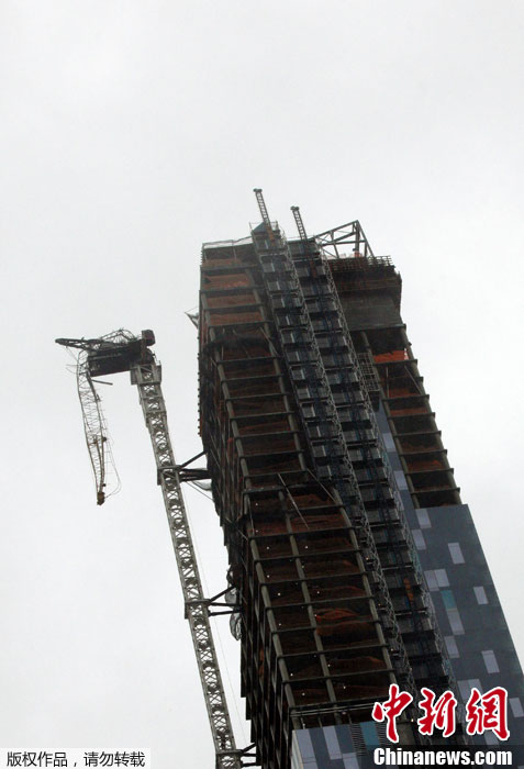 纽约高楼起重机吊臂因飓风“桑迪”折断