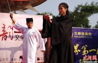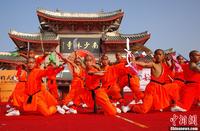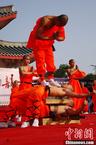 第四届中国(莆田)南少林武术文化节上演头上碎砖头
