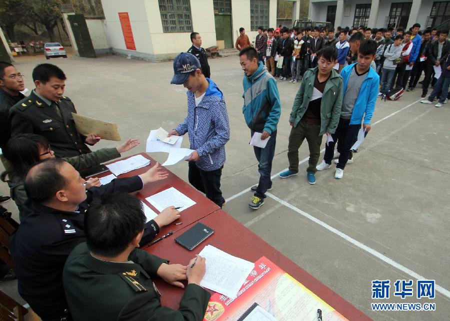2012年10月31日,在山东省临沂市郯城县征兵体检站,工作人员查看应征青年的证件,为征兵工作做准备。 2012年冬季征兵工作将从11月1日起全面展开。根据征兵命令,今年男兵征集对象以高中(含职高、中专、技校)毕业以上文化程度的青年为主,同等条件下,优先征集学历高的青年和应届毕业生。女兵征集的对象,为普通高中应届毕业生和全日制普通高等学校应届毕业生及在校生。普通高等教育五年制大专的应届毕业生及正在大专阶段学习的在校生,2012年高中应届毕业后入读成人教育、各类非学历教育、培训或自考类院校的学生,符合条件的可以征集。国防部征兵办负责人10月31日介绍说,为了吸引高学历人才报名参军,近年来,国家相继出台多项优惠措施,鼓励大学生参军入伍,实行优先报名应征、优先体检政审、优先审批定兵、优先安排使用。张春雷 摄 图片来源:新华网