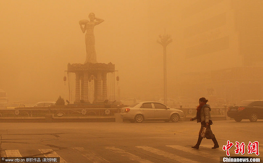 11月2日,受冷空气入侵影响,新疆吐鲁番盆地遭遇大风沙尘天气,气温下降5-8摄氏度,吐鲁番市笼罩在沙尘中,给市民出行带来不便。当地气象部门提醒有关单位和市民做好大风降温天气防灾工作。普拉提 摄 图片来源:CFP视觉中国
