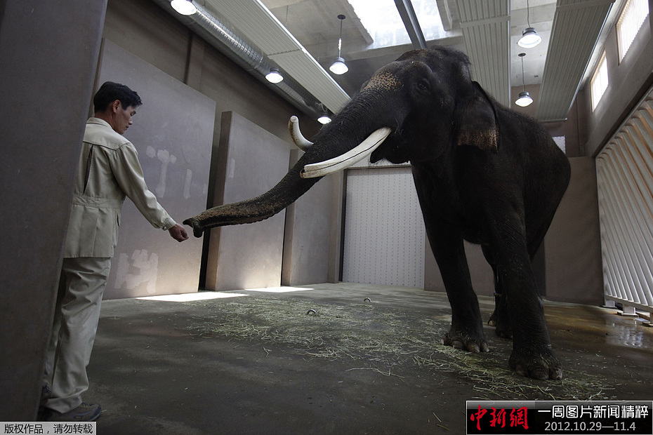 周五(11月2日),韩国京畿道龙仁,生活在爱宝乐园的一只大象能用鼻子发出韩语单词的发音,几乎和人的声音一样。据报道,这头名收Koshik的公象,从2006年开始像人一样说话,能准确发出‘你好’、‘坐下’、‘不是’、‘躺下’、‘好’这五个韩语单词。