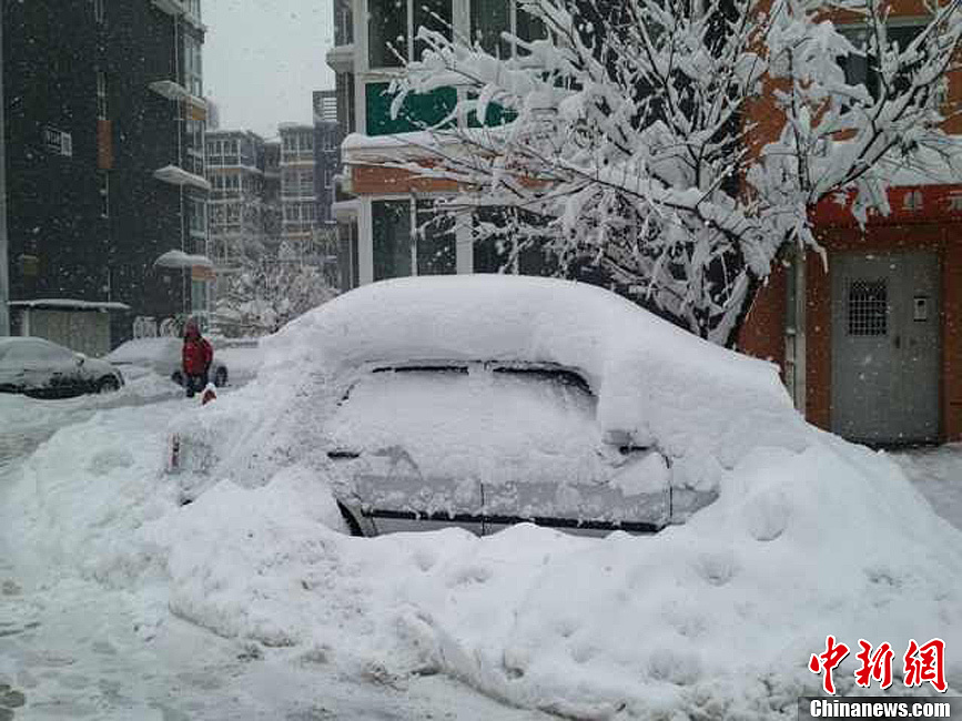 11月4日,北京市气象台发布了暴雪预警信号。在北京绝大多数城区都还沉浸在2012年入冬第一场带来的美景时,北京的延庆等郊区县已经遭受了十余个小时的暴雪袭击,道路已经积雪超过40厘米,已经造成了一定的破坏。中新社发 任立新 摄
