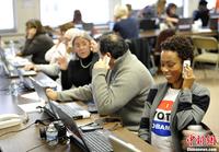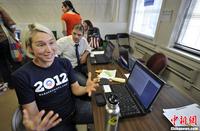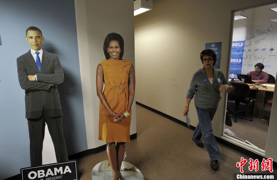 当地时间11月5日,工作人员在位于芝加哥的奥巴马竞选总部紧张工作。2012年美国总统大选将于11月6日投票。中新社发 毛建军 摄