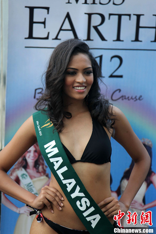 11月6日,“2012地球小姐”选美大赛主办方在菲律宾首都马尼拉举办发布会,来自世界各地数十位参赛佳丽在媒体记者镜头前惊艳亮相。图为马来西亚佳丽Deviyah Daranee。中新社发 张明 摄