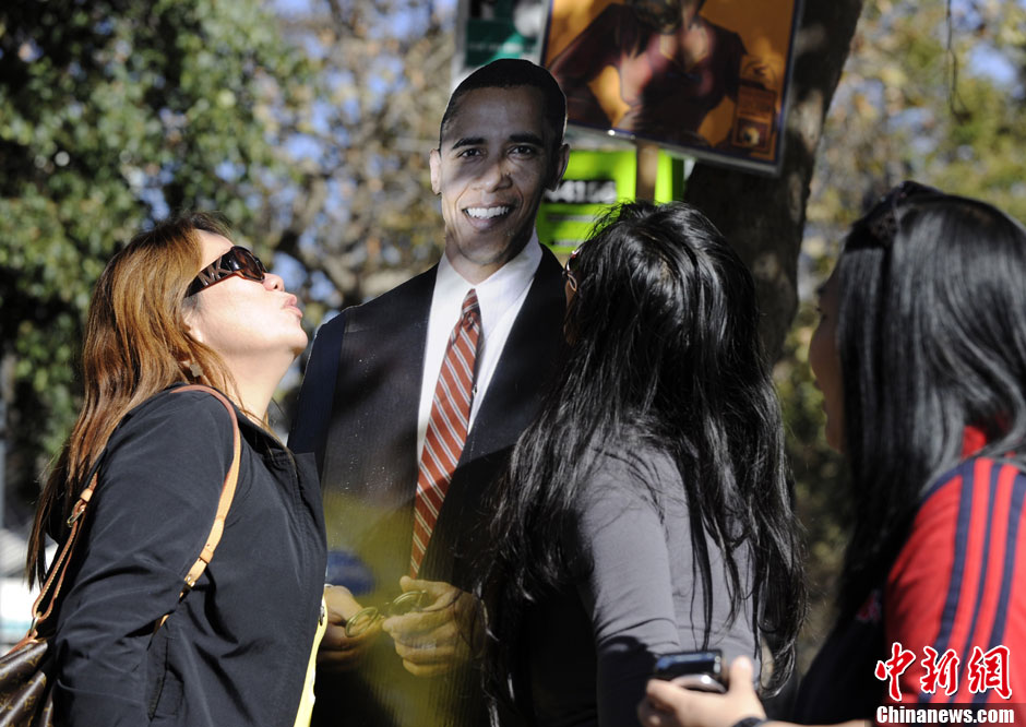 美国亚裔“新鲜”女选民亲吻“奥巴马”