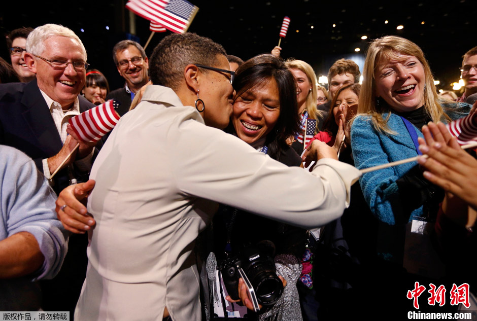 奥巴马连任成定局 支持者庆祝现场当众求婚