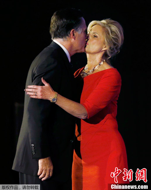 罗姆尼承认败选 妻子深情一吻给予爱的鼓励