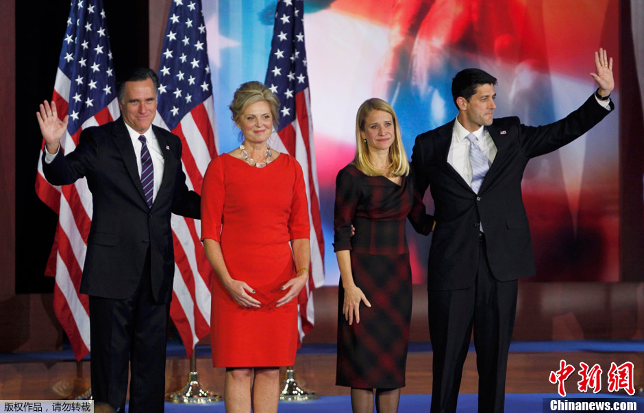 罗姆尼承认败选 与副手瑞安共同感谢支持者