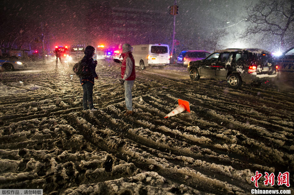继飓风“桑迪”之后,新一轮风暴再次袭击美国东部地区,并给带来大风和强降雪天气。图为当地时间11月7日,纽约皇后区遭遇大雪袭击。