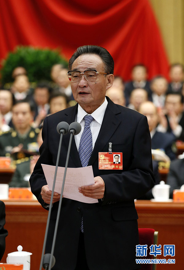 11月8日,中国共产党第十八次全国代表大会在北京人民大会堂隆重开幕。 吴邦国同志主持大会。鞠鹏 摄 图片来源:新华网