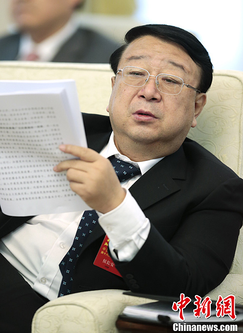 11月9日,十八大湖北省代表团在北京人民大会堂讨论大会报告,并对中外媒体开放。图为十八大代表、中共湖北省纪委书记侯长安参加讨论。中新社发 盛佳鹏 摄
