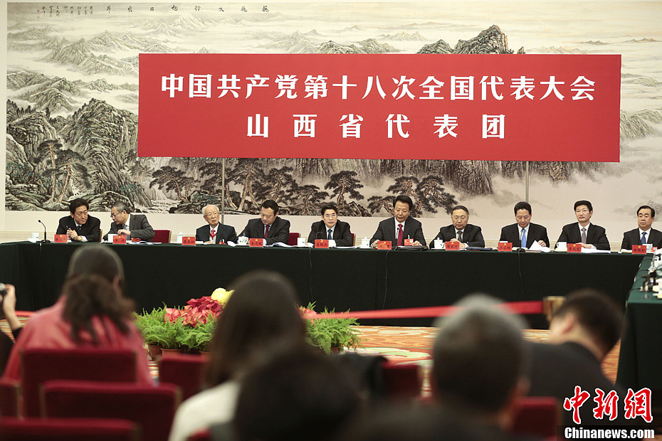 11月9日,十八大山西省代表团在北京人民大会堂讨论大会报告,并对中外媒体开放。中新社发 盛佳鹏 摄