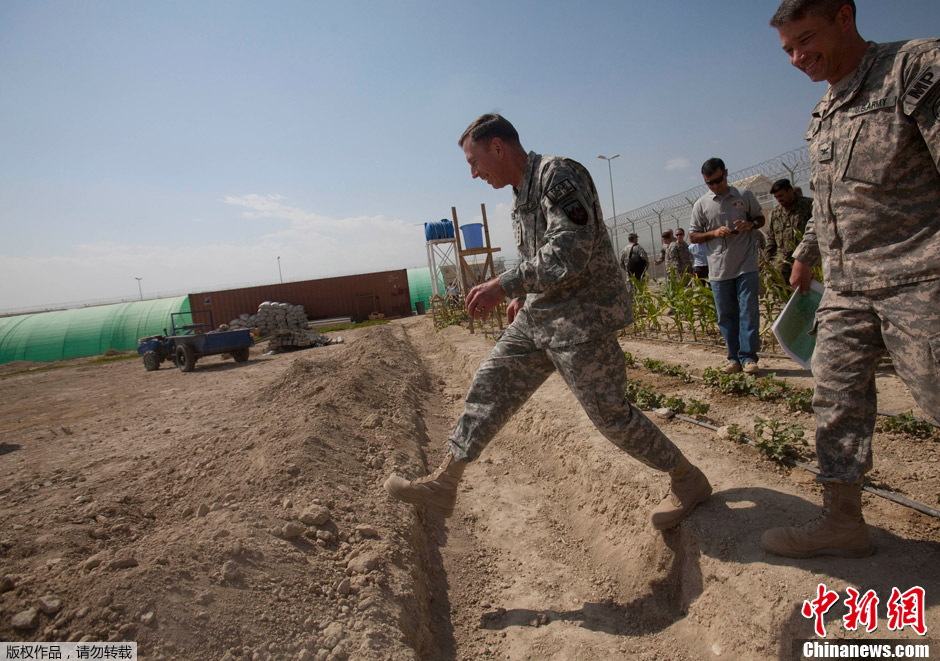 当地时间2012年11月9日,美国中央情报局局长戴维-彼得雷乌斯宣布,因牵涉婚外情已向总统奥巴马递交辞呈,奥巴马当天批准了他的辞职请求。图为2010年,时任阿富汗国际部队最高指挥官的戴维-彼得雷乌斯在考察喀布尔北边一处拘留所。(资料图)