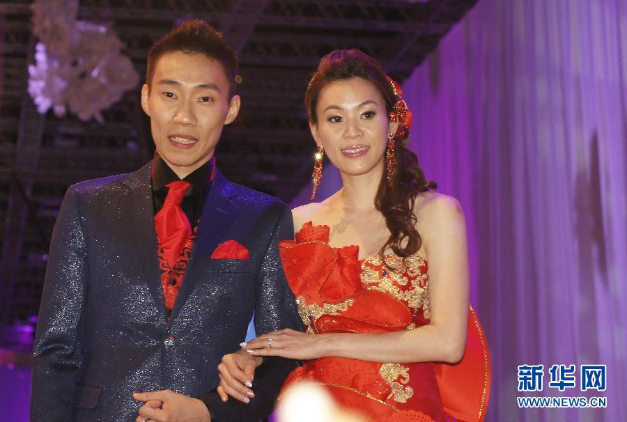 11月9日,在马来西亚首都吉隆坡,马来西亚羽毛球名将李宗伟与妻子黄妙珠在婚礼现场。当日,马来西亚羽毛球名将李宗伟与马来西亚前女单一号黄妙珠在吉隆坡会议中心举行婚礼,马来西亚最高元首阿卜杜勒·哈利姆、总理纳吉布等数百人出席。10日,李宗伟和黄妙珠将举行另外一场婚宴,邀请亲朋好友出席。林昊 摄 图片来源:新华网