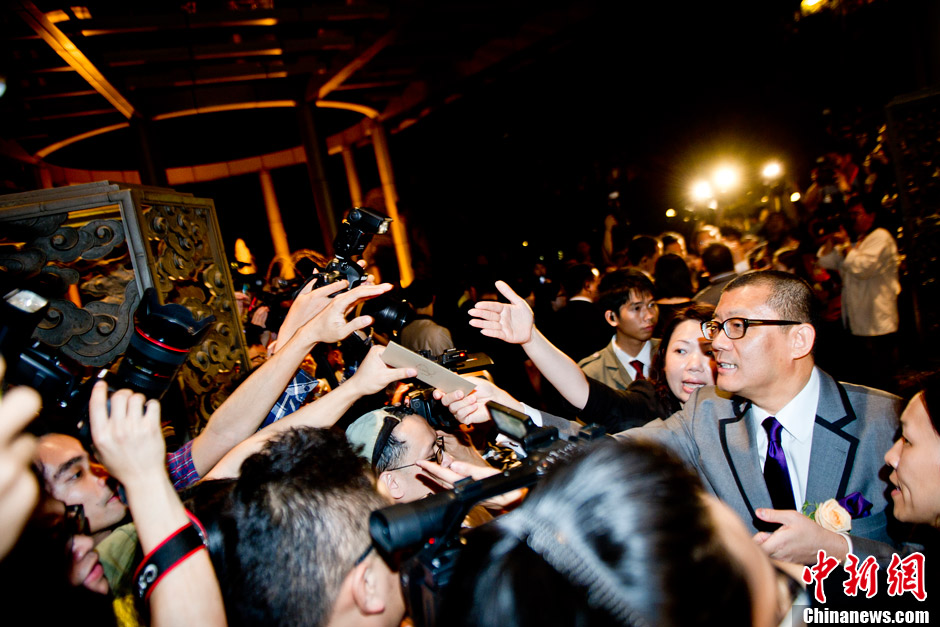 11月10日晚,在备受瞩目的刚晶世纪婚宴现场外,霍家工作人员来到媒体区派利是,现场媒体欲借机采访相关工作人员,不过遭对方婉拒。龙宇阳 摄