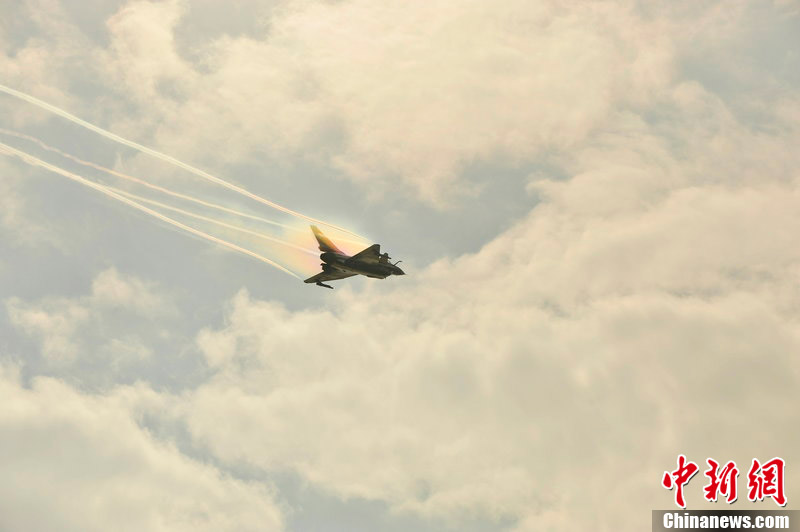 2012年11月10日,广东珠海,第九届珠海航展临近,歼十战斗机试飞,超音速突破音障瞬间。孙楠 摄 图片来源:CFP视觉中国