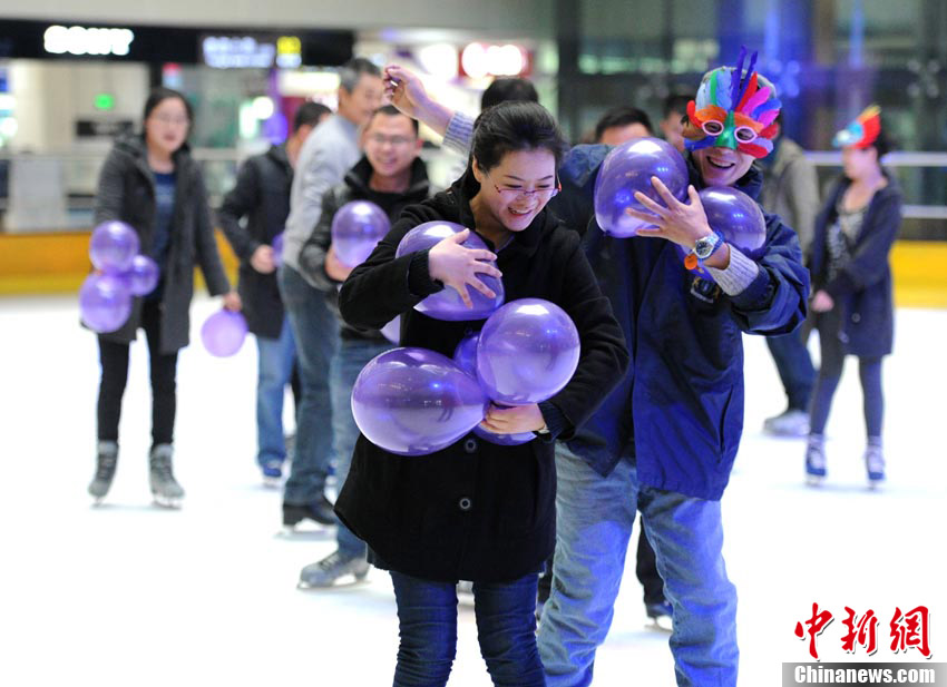 11月11日,在长春某商场内举行了一场别开生面的冰上假面舞会,吸引大量单身男女前来参加。据了解,冰上假面舞会包括才艺展示、互动游戏等环节。张瑶 摄