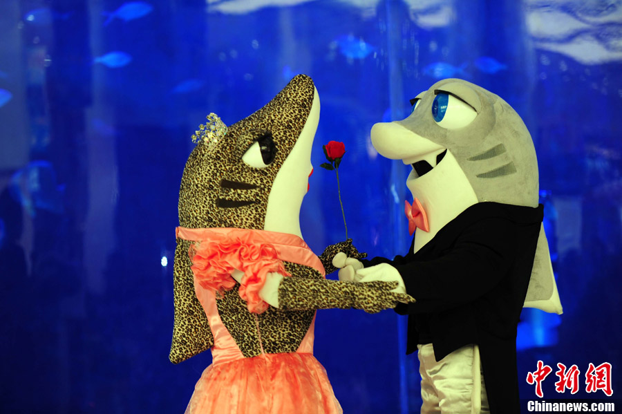 11月11日,辽宁省沈阳盾安新一城举行一场特殊的演出,由一群卡通人物在“光棍节”当天跳骑马舞求爱现场表演,可爱的舞姿吸引了众多市民的观看。图为卡通人物在表演。中新社发 于海洋 摄