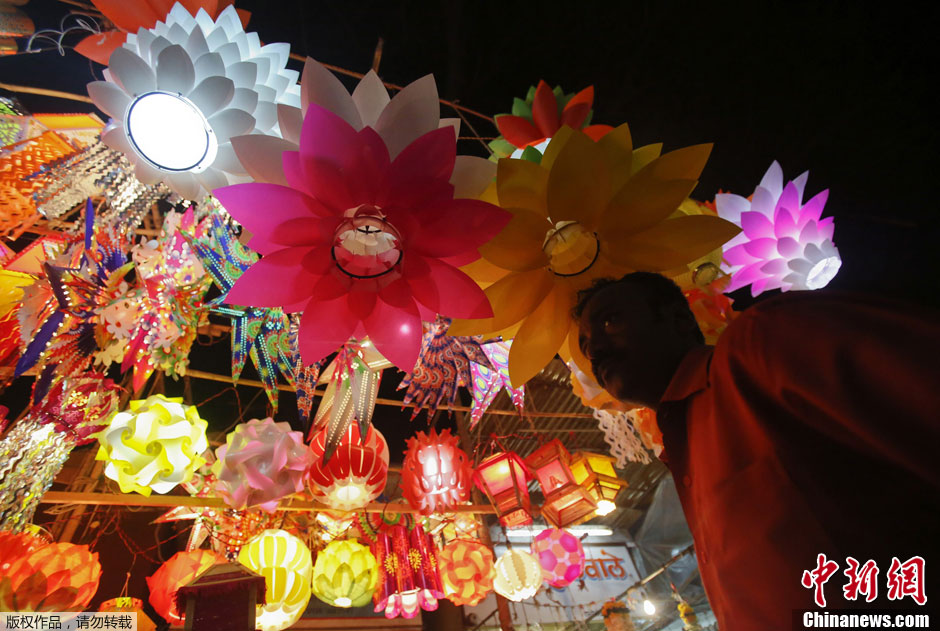 当地时间11月12日,印度孟买,民众“张灯结彩”,迎接印度教传统的排灯节的到来。