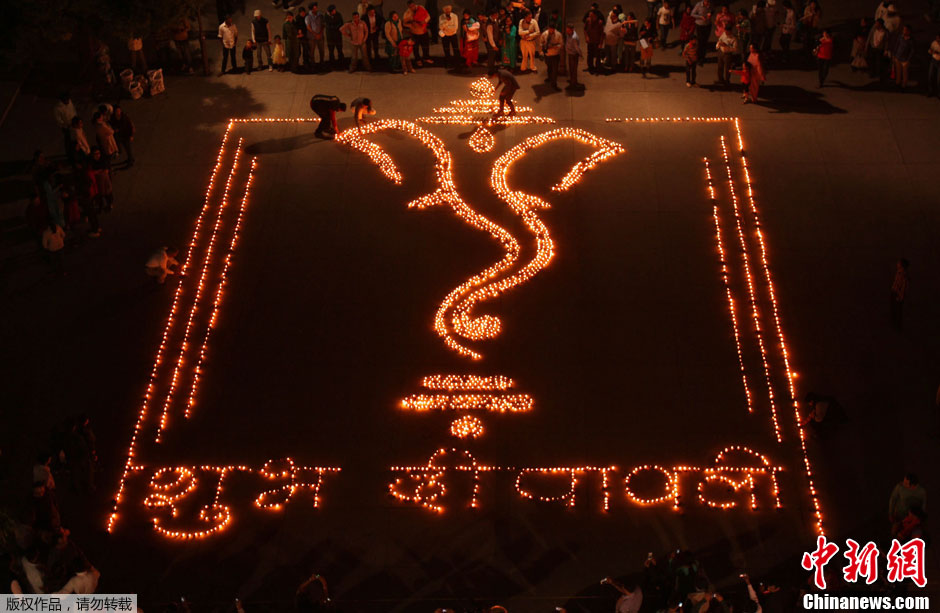 印度民众“张灯结彩”庆祝传统排灯节