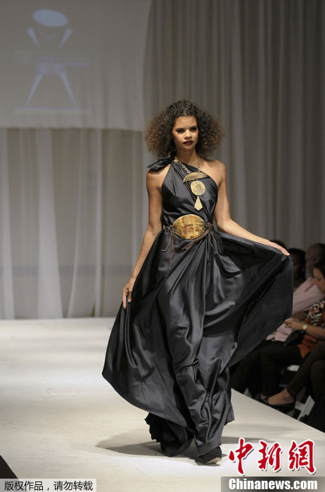 当地时间11月11日,海地首都太子港,海地首个时装周走秀活动精彩上演,模特在T台上展示时装。
