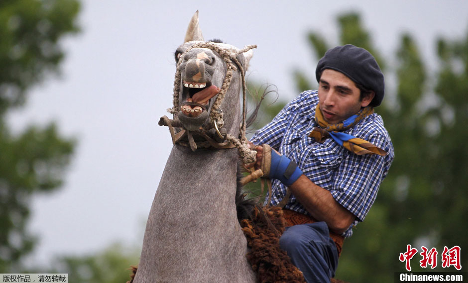 当地时间11月11日,阿根廷San Antonio de Areco,民众盛装骑马参加活动,庆祝“传统日”。
