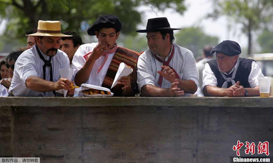阿根廷民众盛装骑马庆祝传统日