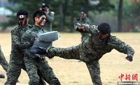 当地时间2012年11月12日,韩国特种兵在首尔展示其高超武功,头顶碎石等技艺令人叹为观止。图片来源:东方IC 版权作品 请勿转载