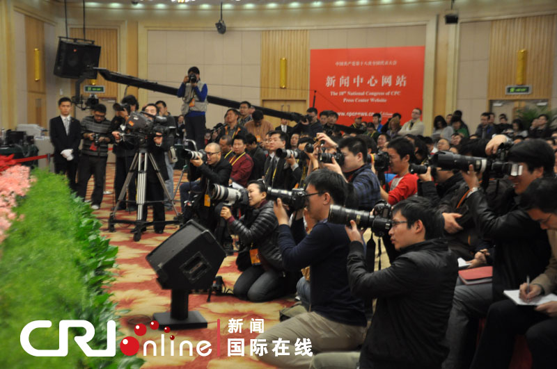 十八大记者采访忙 镜头对焦各不同