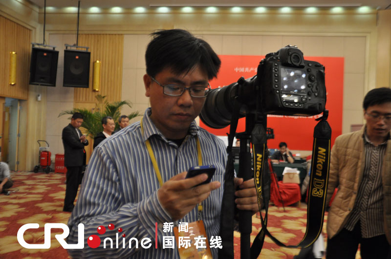 十八大记者采访忙 镜头对焦各不同