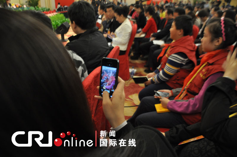 大会仅有的几位小记者也是拍摄的对象。李蔚 摄 图片来源:国际在线