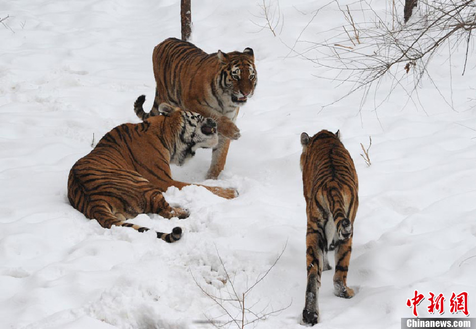 长春暴雪后 动物园猛兽雪地“撒欢”
