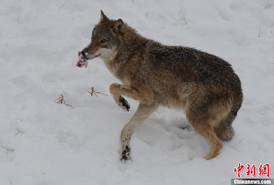 长春暴雪后 动物园猛兽雪地“撒欢”