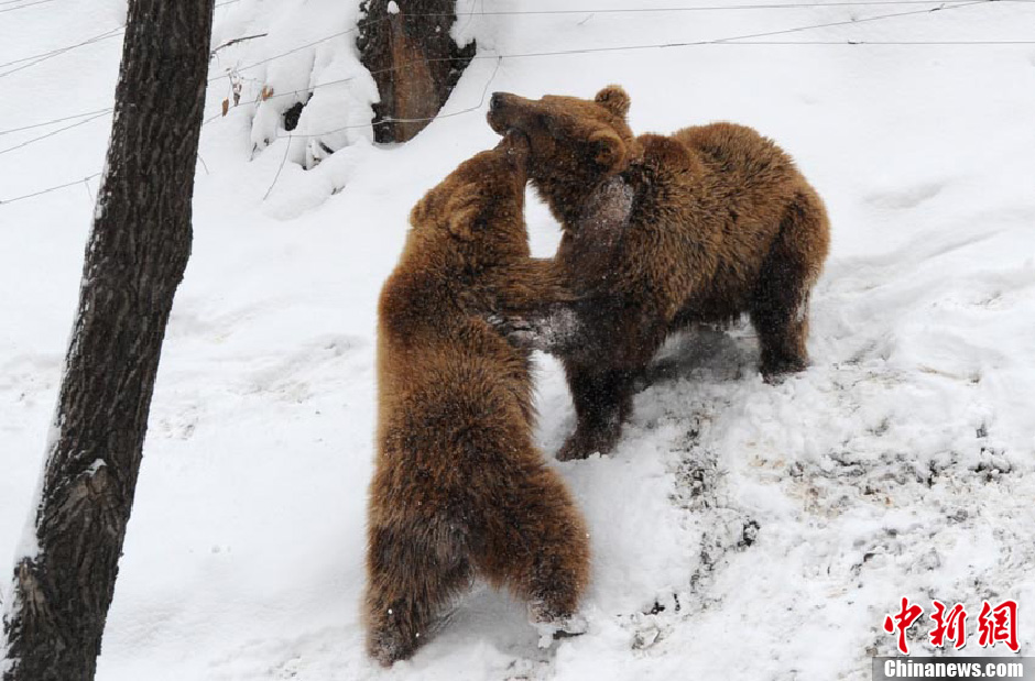 吉林省长春市连续两日的暴雪,将这座城市披上了一层厚厚的“雪衣”。11月14日,记者在长春动植物公园看到,这里的东北虎、熊、狼等猛兽,面对皑皑白雪也显得十分兴奋,在雪地上不断地撒欢。张瑶 摄