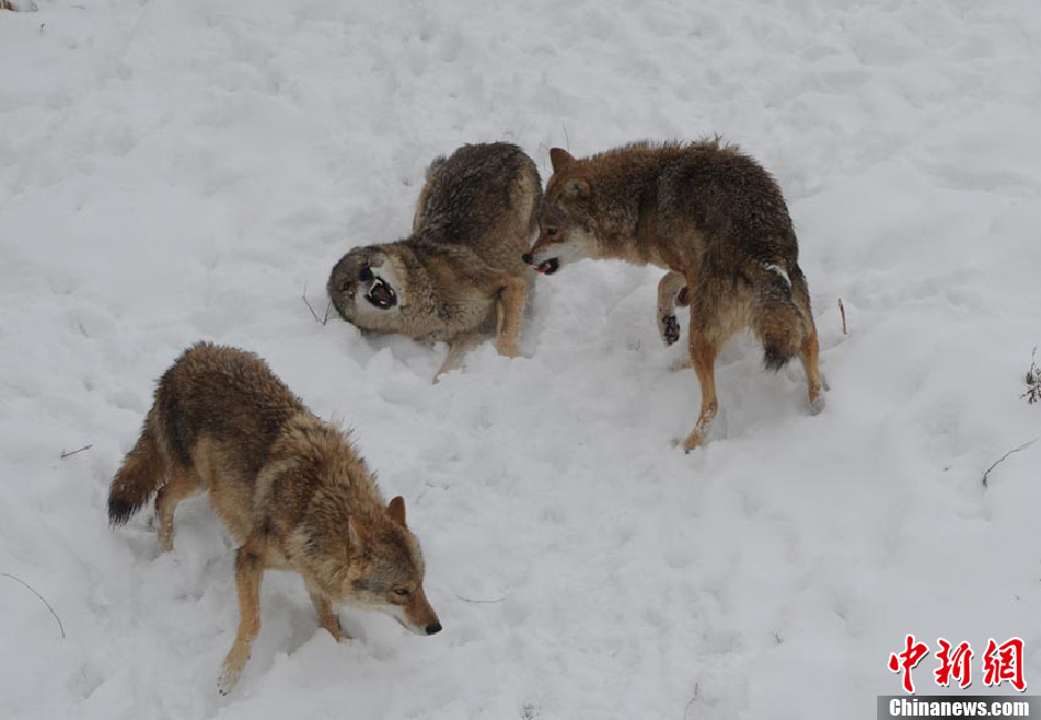 长春暴雪后 动物园猛兽雪地“撒欢”