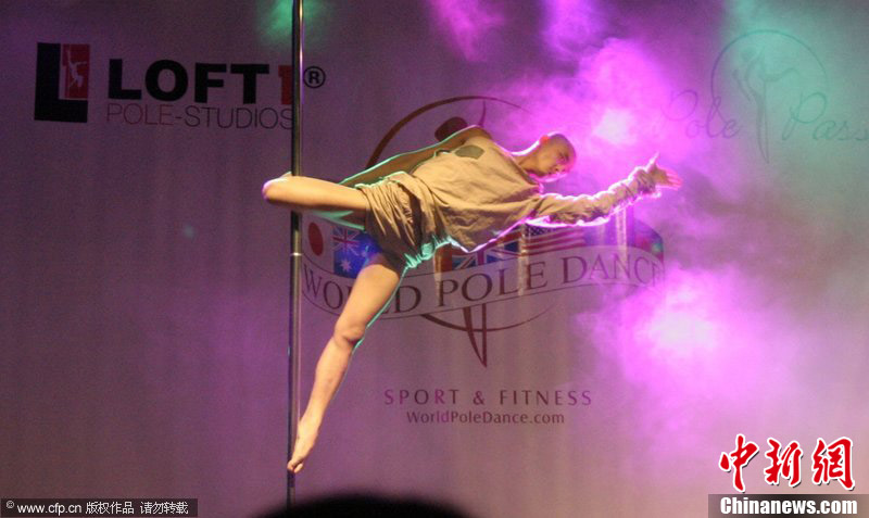 11月14日讯,瑞士苏黎世,11月10日,2012世界钢管舞锦标赛赛况。图为男单闫少轩。图片来源:CFP视觉中国
