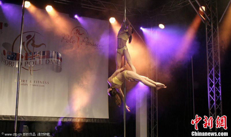11月14日讯,瑞士苏黎世,11月10日,2012世界钢管舞锦标赛赛况。图为依繁,曹诺。图片来源:CFP视觉中国