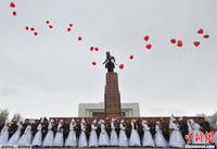 当地时间11月13日,来自吉尔吉斯斯坦全国的35对新人在首都比什凯克举行集体婚礼。集体婚礼由吉尔吉斯斯坦青年劳工部主办,由吉尔吉斯斯坦大穆夫提主持。新人在婚礼后领取了结婚证,并奔赴市中心的胜利广场向“长明火”献花。