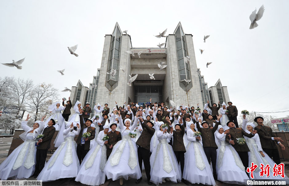 吉尔吉斯斯坦35对新人举行集体婚礼