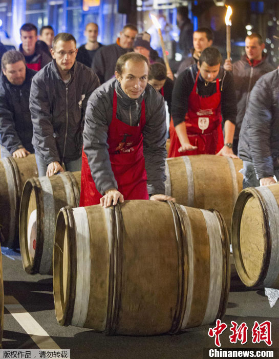 2012博若莱新酒里昂上市 现场滚酒桶HIGH翻天